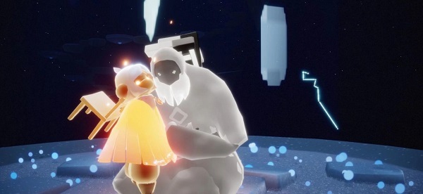 先祖乃是整个云中王国的缔造者,而我们的使命同样是解放先祖。在游戏里,已解锁的先祖会以跪伏姿态出现在地图的某些角落,就如下面这张图所示。尚未解锁的先祖呈现蓝色,当你靠近时,能够使用蜡烛与他们进行交流,进而体验他们的专属小剧情。
