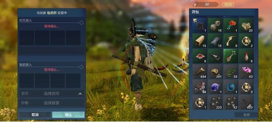 当另一位旅者通过了交易申请,便会弹出交易面板,按照面板上的要求操作即可。物品会立即进入背包中。