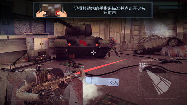2、需要攻击敌人的时候移动屏幕,将准线对准敌人。