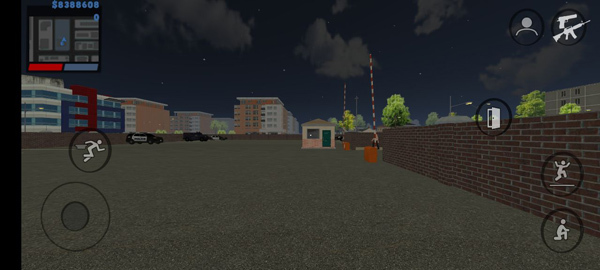 4、左边轮盘可以操作方向,右边轮盘有跳跃、下蹲、射击等按键;