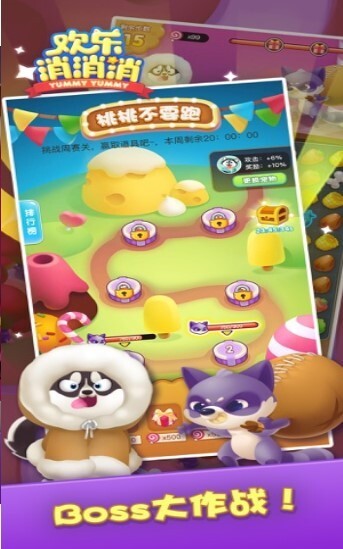 2、欢乐消消消游戏中打造了400多个精彩有趣的游戏关卡,而且游戏的难度逐渐增加。