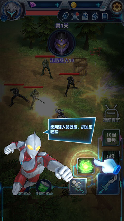 1、奥特曼钢铁飞龙具有经典角色奥特曼和钢铁飞龙角色养成;
