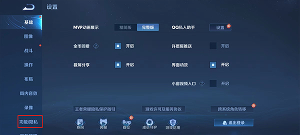 2、在设置功能中找到【功能/隐私】