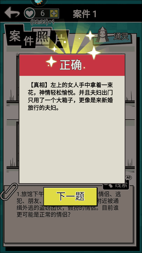 7、接下来,在通关之后,玩家就可以开始下一关的推理了。