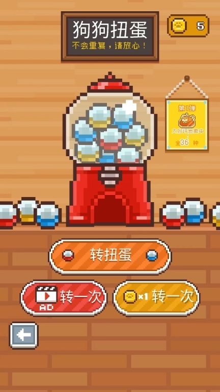 3、还包含收集要素,有各种狗狗的可爱像素图可以通过扭蛋方式获取。