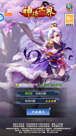 1、打开神骑世界游戏,选择区服进入