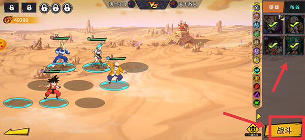3、在战斗前,你需要安排你的英雄上阵,安排完成后点击战斗即可
