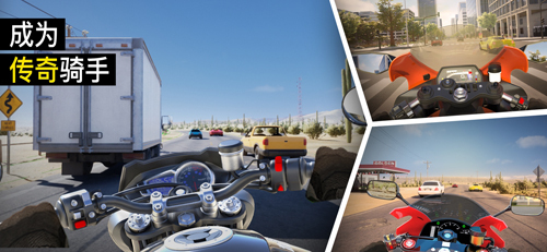 游戏中,为玩家提供了无尽模式、限时模式以及职业模式这三种截然不同的游戏模式以供挑选。同时,游戏采用极为逼真的3D第一人称视角,搭配热血澎湃的背景音乐与真实音效,给予玩家紧张刺激的游戏感受。此外,游戏具备多变的天气环境、模拟真实的摩托车马达轰鸣等元素,全力为玩家打造最真实的游戏视听盛宴。