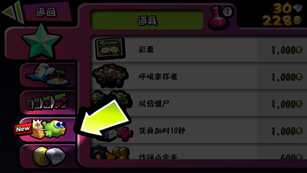 商店:游戏结束后会出现一个界面,界面上有许多格子。当这些格子都装满脑子时,系统会赠送一张刮刮卡。刮开刮刮卡,可能获得道具、装饰或者钱。钱既能够用来升级道具(就是前文提到的那些道具),也能用于升级技能x,像开场出现两个僵尸,僵尸走两步就送你四个人头x这种。当然,钱还能用来购买装饰,只不过装饰是每一局随机分配的,没办法呀。
