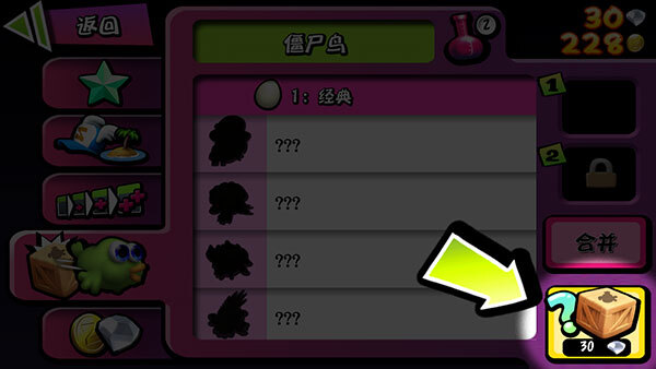 3、再点击左侧的【僵尸鸟】图标。