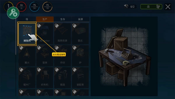 1. 开启工艺菜单,通过放网的方式来获取食物。