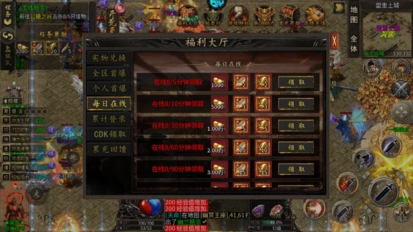 1. 玩家于福利大厅内,能够领取在线福利奖励。