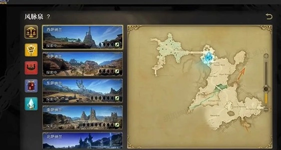 5、可以看到根据主城划分,各个地图的风脉数量不同