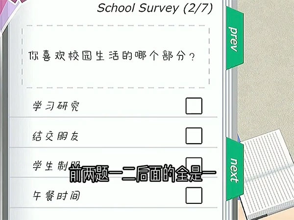 1、这款游戏的玩法围绕着高中生活的日常展开。玩家需要接受各种课程。