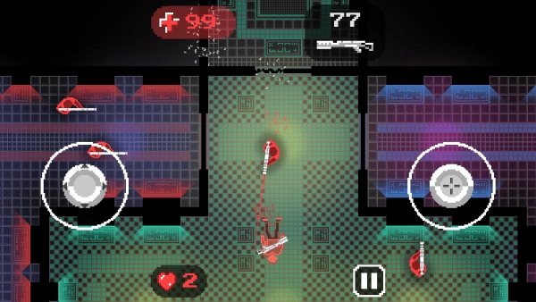 游戏开启,需双手操作,左手负责移动,右手用于调整方向并射击。
