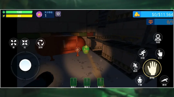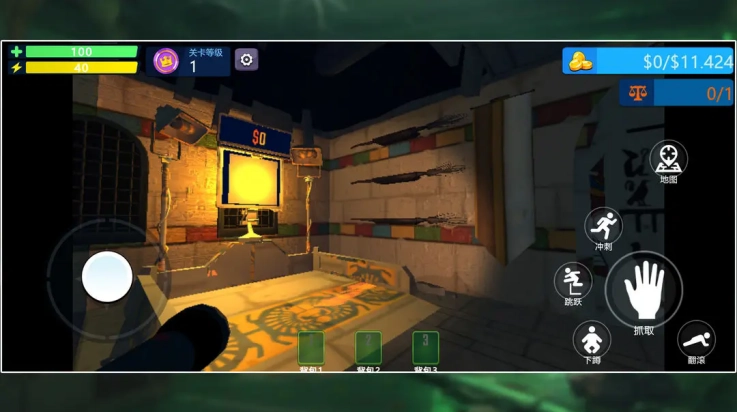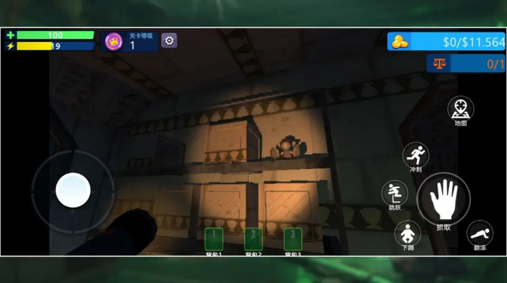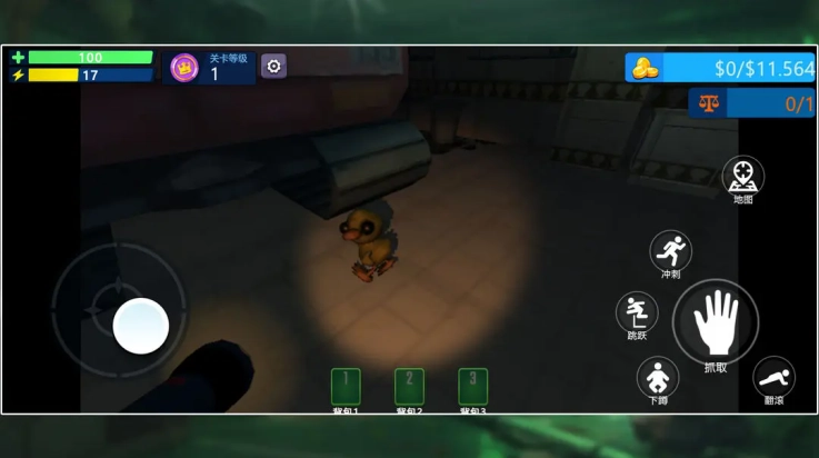 5、右侧按键区包含“下蹲”“跳跃”等交互功能键,长按或点击触发对应动作。