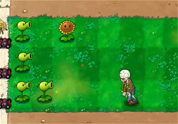 3、僵尸靠近后,植物不断攻击,比如豌豆射手可以发射豌豆。