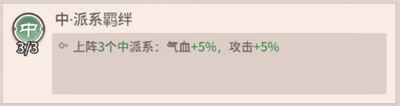 正·派系羁绊:上阵3个正派系:气血+5%,攻击+5%