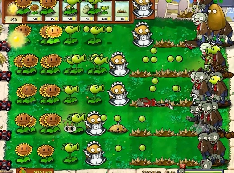 你的第一道防线。它们通过发射豌豆来攻击僵户。