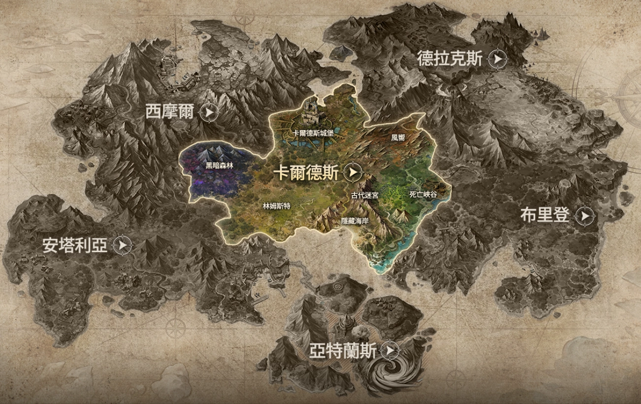 卡尔德拉斯大陆以南由几个大岛组成的地区,自古以来元素精灵在此共同生活。