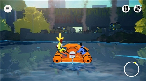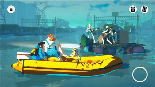探索航行:玩家可自由驾驶船只在广阔的水域航行,前往不同的陆地和岛屿。通过拖动屏幕控制快艇方向,利用右下角指南针指引前进方向,到达目的地后将快艇停在码头即可上岸探索。
