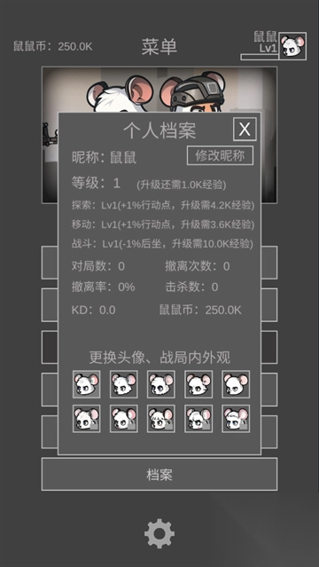 5.初始鼠鼠币只有250.,所以选择新手战局进入,然后会让你选择配装,队友,地图与,还有了解你的任务是什么。