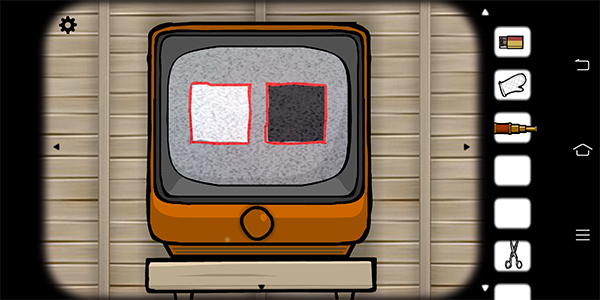 每个场景都反复走了好几趟,这才发现得把东西放置在地下室里那个形似显示屏的水位计(?)上头,就是那个机关,上面还画着一个向下的箭头。嗯……如此一来,就能把白方块送到锈湖了,黑方块也是同样的操作。