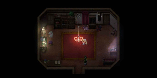 1、幽静黑暗的房间内玩家进行探索寻找线索道具。
