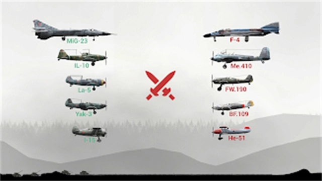 与历史上最好的战斗机进行战斗,从经典战斗机到轻型和重型神风轰炸机,例如 Grumman F6F Hellcat、Lockheed P-38(1941 年战斗机)、Su-5、P-51、P-36 Hawk、Simpleplanes、三菱 A6M Zero、B-17 Flying Fortress,甚至还有【二战】军用飞机。