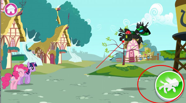 2、当进入关卡后,点击右侧的奔跑按钮,以此操控小马去追赶恶魔,把被偷走的物品夺回来。