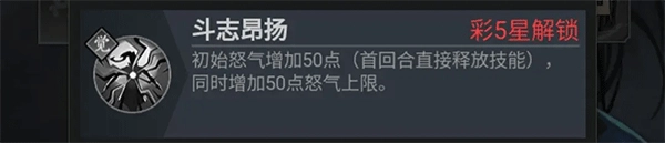 斗志昂扬,先手控制型,首回合技能先发制人,突破常规怒气循环机制,形成战术压制。