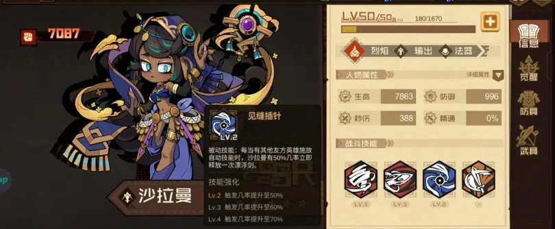 被动技能:队友的每段技能伤害都能触发回血,可以说是非常契合沙拉曼&薇薇安了。