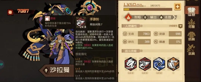 沙拉曼的被动技能进一步增加自动技的释放频率,队友每一次释放自动技能都有概率释放一次浮游剑。