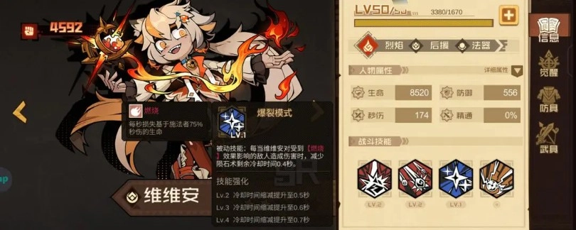 维维安的被动可以缩减自动技能的冷却更频繁地释放自动技能,而每次自动技能有机会触发沙拉曼的被动。(需要敌人被燃烧才能触发)