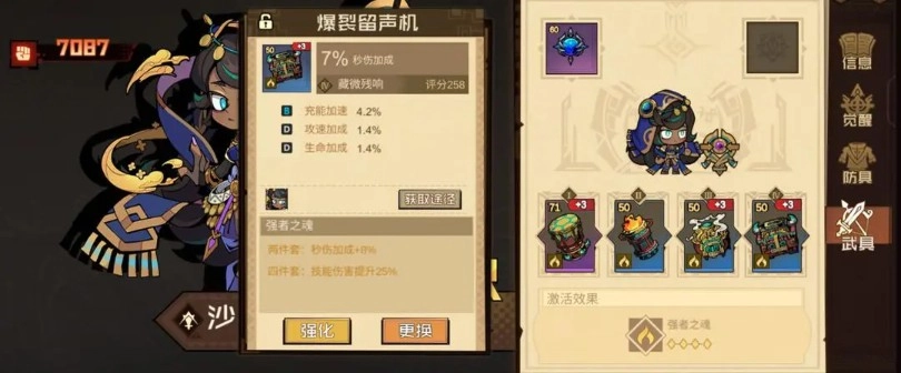 沙拉曼的回响,可以看到沙拉曼的伤害近乎全是技能伤害,所以回响建议携带+技能伤害的强者之魂。