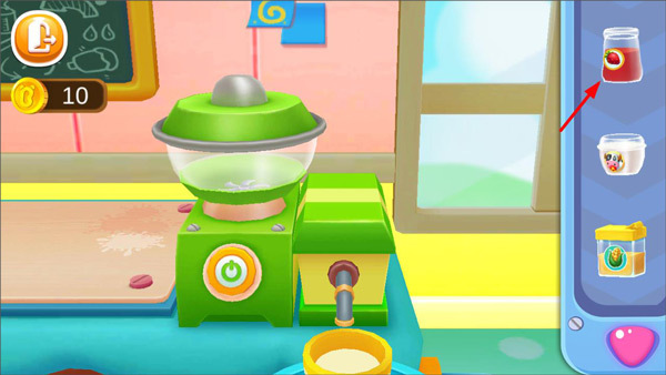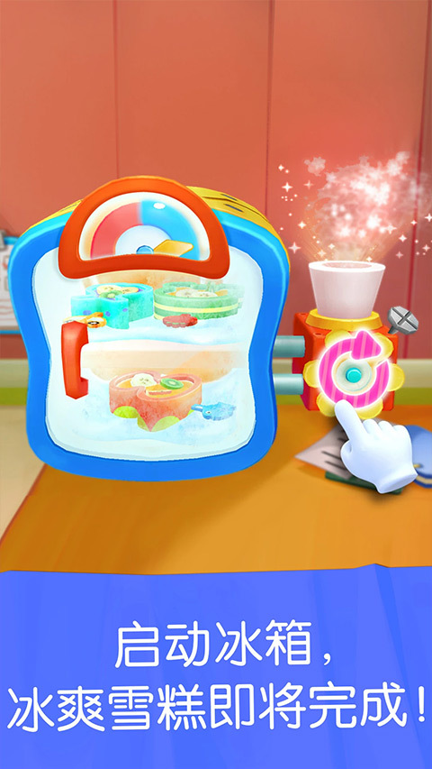 2、底料搅拌完成后,借助机器将其放入冰箱。此时,玩家要为雪糕添加各类果酱,然后开启搅拌。