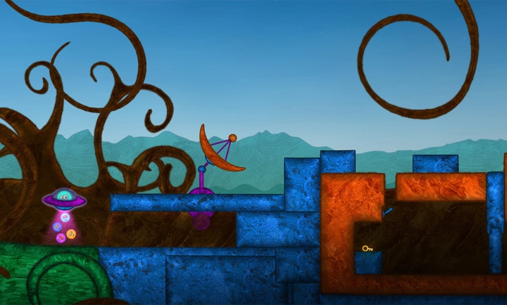 3. 隐藏的收集系统涵盖外星零件、地图碎片等多样物品,激励玩家对游戏的每个角落进行反复探索。1、通过跳跃、攀爬、滑翔等方式穿越复杂地形,抵达每一关的终点。 2、操作各种机械装置如升降机、传送带、重力开关等解锁新路径。 3、完成谜题任务推动主线剧情,最终揭开UFO坠落背后的真相。