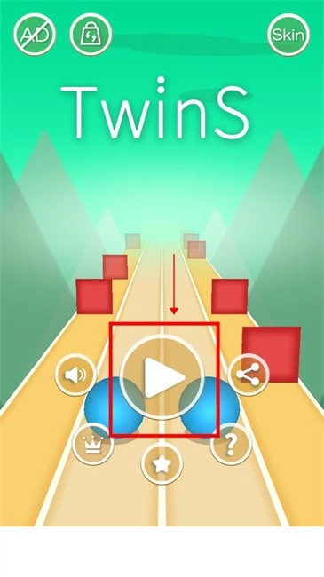 1、点击屏幕中央的播放按钮开始游戏,双球会自动向前滚动,玩家需左右滑动控制方向。