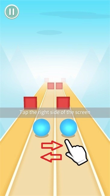 2、看到红色障碍物时,快速点击屏幕右侧让蓝色球体躲开,别撞上障碍。