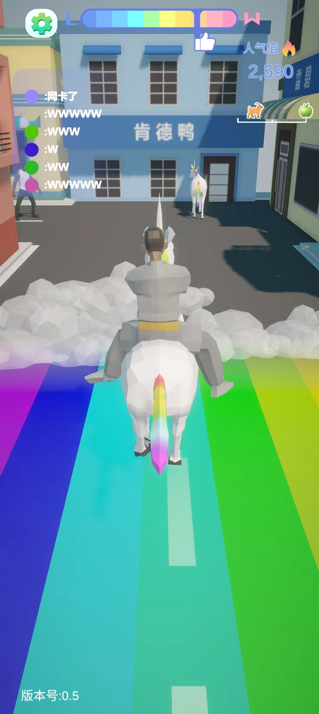 游戏内设计了多样的道具,如彩虹马、火锅、手机等,恶搞元素满满