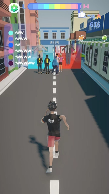 当玩家进入游戏后,便能操控甲亢哥展开跑酷。