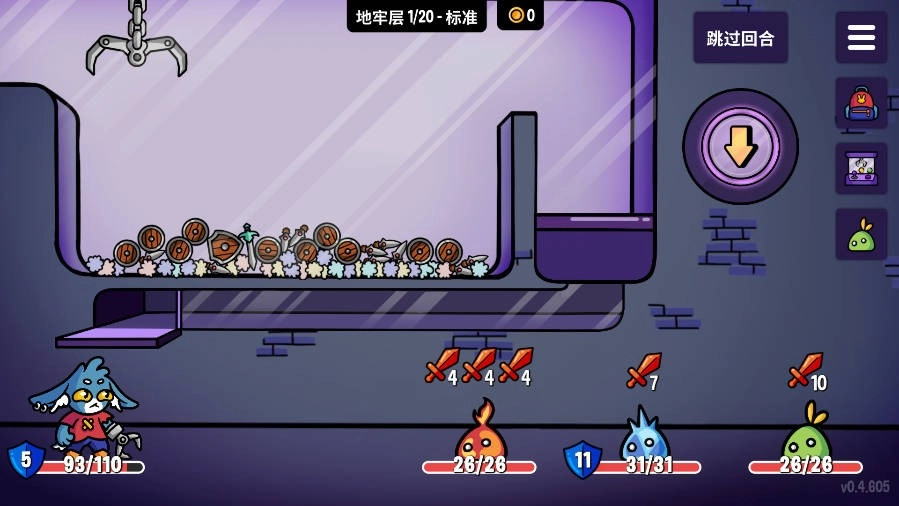 1在游戏里,玩家需操控娃娃机抓取形形色色的物品,以此来灵活调整自身游戏策略。所抓取的物品丰富多样,其中既有像盾牌、剑这类实用的防御武器,也有诸如毒药之类的消耗品,甚至还能抓到水或者岩浆等具备特殊效果的物品。玩家能够依据自身的战斗实际需求,自由搭配这些物品,进而打造出独具特色的战斗方式。