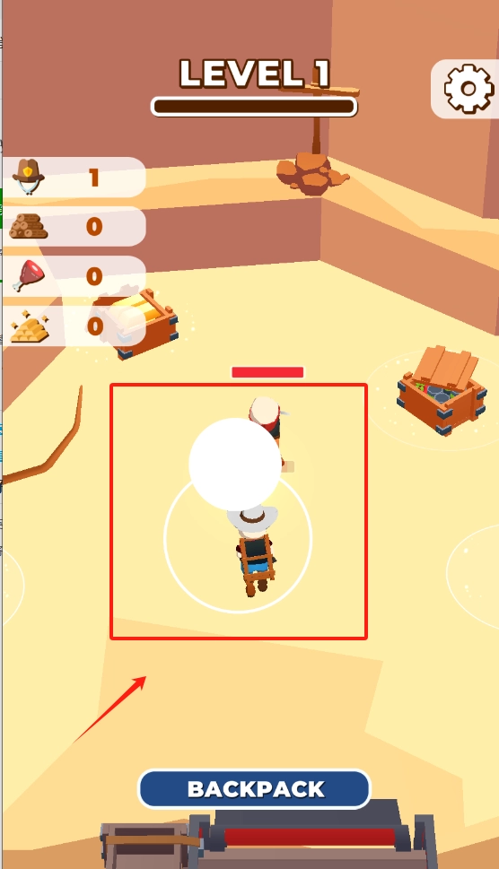 2、站在红框里,靠近宝箱开箱拿东西,底部背包查看物资。