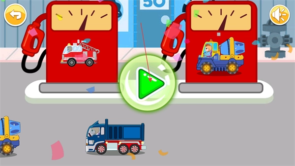 3、完成汽车与加油机的匹配后,点击绿色播放按钮,持续此操作完成游戏任务。