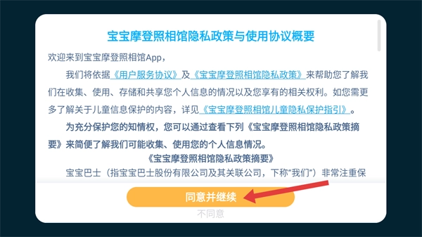 1、玩家打开游戏后,点击【同意并继续】即可进入游戏。