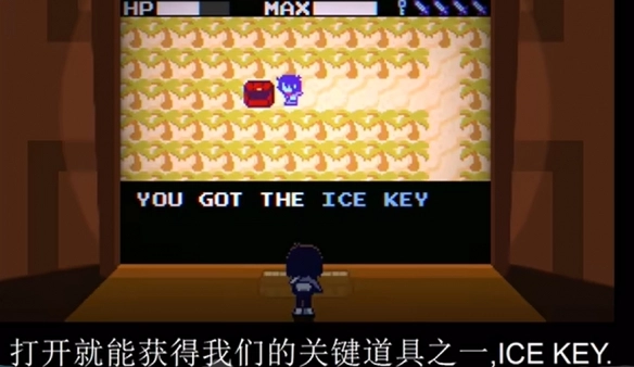 6、看到白色的地板后,找到有着游戏图标的门口,用之前红色宝箱里面的道具进行打开。