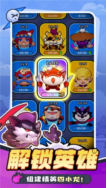 40+可爱英雄,每位英雄拥有专属的技能,前往组建你的精英4人小队!