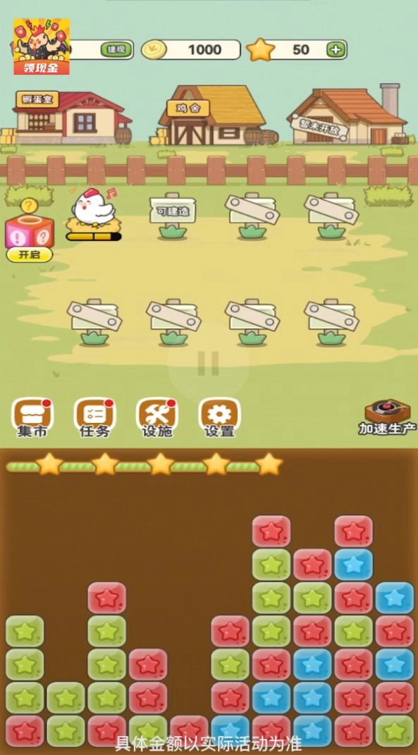 这次肯定是爆鸡,消除星星可以收获更多小鸡,把小鸡进行合成就能赚钱啦,每天都能给你带来奖励。