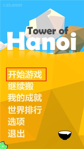 1. 打开汉诺塔手机游戏,点击“开始游戏”。