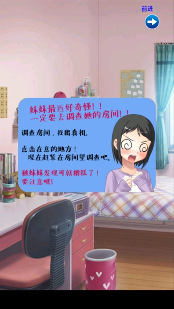 3、妹妹房间里的一切都有可能是线索,在查找的过程中也要随时做好妹妹回来的准备,不要被她发现。